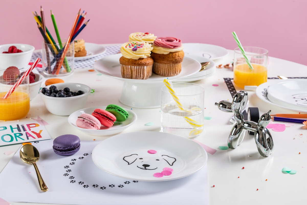 בחרנו לחגוג בארוחת קינוחים ופירות ולהשתמש בקולקציה חדשה של צלחות קורל מבית קורנינג הנקראת My Best Friend. צלחות העוגה בקולקציה מעוטרות באיורים מתוקים של שלושה כלבים – מקס, לונה ואלה.