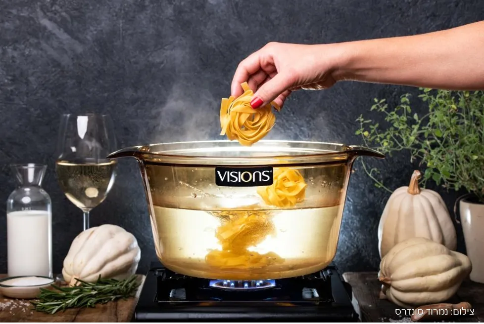 VISIONS Flair - טכנולוגיה חדשה ומדהימה של 100% זכוכית אולטרה עמידה לחום, מייצרת סירים שקופים לשימוש על אש ישירה. סירי ויזיון פלייר מעוצבים בסגנון עכשווי, בעלי נפח גדול יותר, עם שוליים משופרים ליציבות מקסימלית של המכסה ובקרה על הבישול. הידיות רחבות יותר, לאחיזה ארגונומית ונוחה להגשה. ניתן לאחוז בידית המכסה, גם כאשר הוא חם.