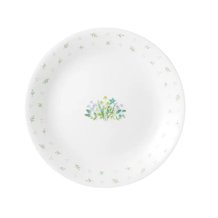 דגם עשבי הקאנטרי נותן נגיעה כפרית מאירופה הרומנטית לשולחן האוכל שלכם עם דוגמת פרחים מסורתית עדינה. עיטור נוסטלגי המתאים לסגנון המסורתי הוותיק של קישוט כפרי. סט הצלחות של קורל מעוטר בפרחים צהובים וסגולים עדינים, לצד עלים וענפים ירוקים בשולי הצלחת. דגם זה מאופיין בסגנון וינטאג', עיטורי העלים נישאים בעדינות רבה על גבי הרקע הלבן מקשטים כל שולחן ומתאימים הן לשימוש יומיומי והן לאירוח.