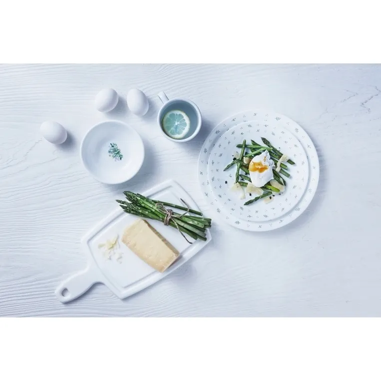 דגם עשבי הקאנטרי נותן נגיעה כפרית מאירופה הרומנטית לשולחן האוכל שלכם עם דוגמת פרחים מסורתית עדינה. עיטור נוסטלגי המתאים לסגנון המסורתי הוותיק של קישוט כפרי. סט הצלחות של קורל מעוטר בפרחים צהובים וסגולים עדינים, לצד עלים וענפים ירוקים בשולי הצלחת. דגם זה מאופיין בסגנון וינטאג', עיטורי העלים נישאים בעדינות רבה על גבי הרקע הלבן מקשטים כל שולחן ומתאימים הן לשימוש יומיומי והן לאירוח.
