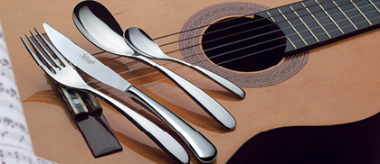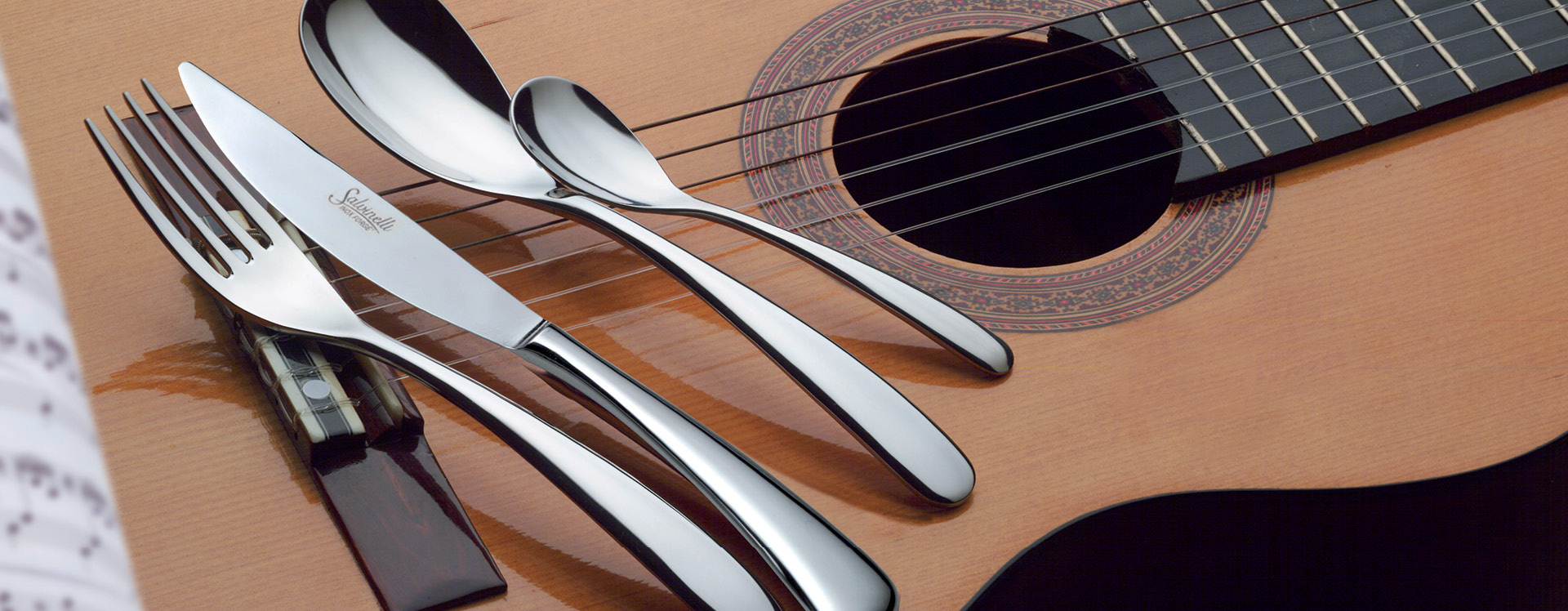 דגם פוראבר מבית סלווינלי בעיצוב יוקרתי ואיכותי, עשוי נירוסטה 18/10 בעיצוב מעוגל - מתאים לשימוש יומיומי ולארוחות חגיגיות.