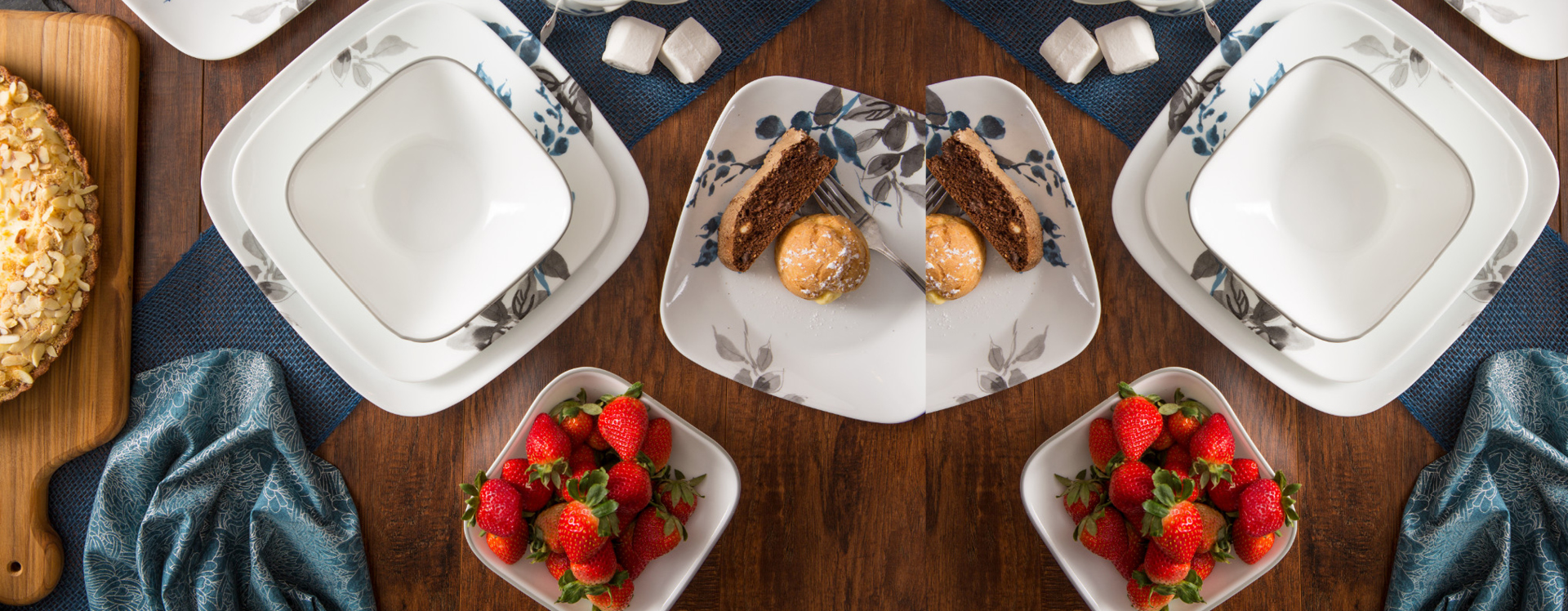 דגם קיוטו נייט בעל עיטורי עלים בגווני כחול אינדיגו והצללות אפורות, בהשראת המרקמים של גן יפני עדין. דגם זה פופולרי במיוחד ומתאים לאירוח חגיגי או יומיומי כאחד.