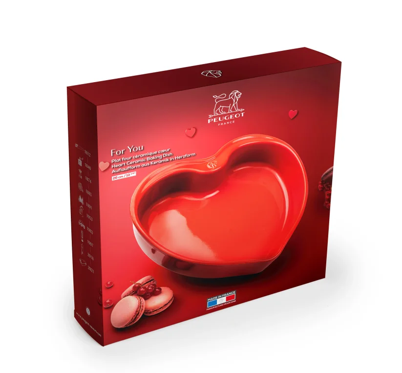 הדרך המקורית והכיפית להגיד למישהו שאוהבים! תבנית קרמית בצורת לב בצבע אדום עז, המסמל תשוקה ואהבה. עיצוב הקרמיקה של פיג'ו מבטיח בישול אחיד ועסיסי, כמו גם ניקוי קל. התבנית מיוצרת בצרפת, 100% מחומרים טבעיים, ושומרת על חום המנה עד 30 דקות.