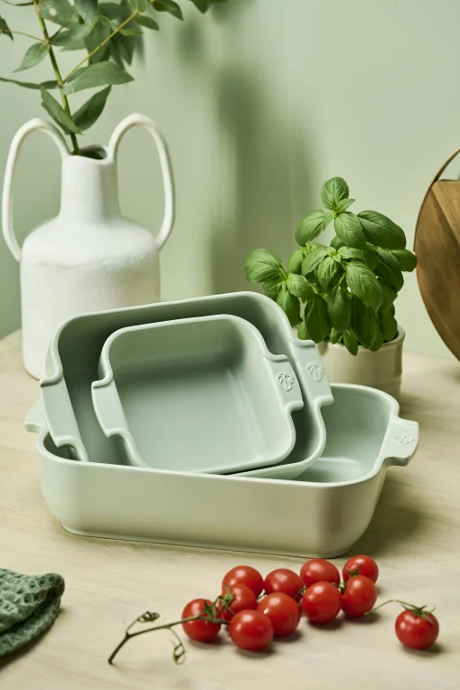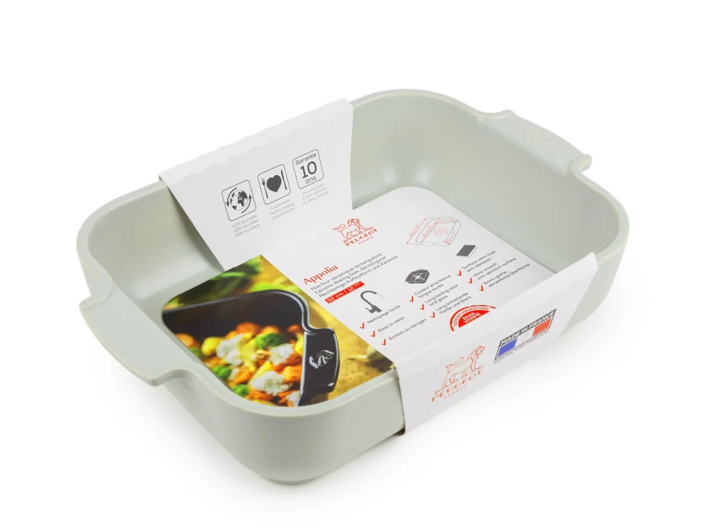 הדגם האיקוני של פיג'ו, עכשיו בגוון ירוק מנטה מהמם. הקרמיקה הייחודית של פיג'ו, העשויה מרכיבים טבעיים, מבטיחה בישול בריא ואחיד ושומרת על חום המנה עד 30 דקות לאחר היציאה מהתנור. האמייל העמיד במיוחד הופך את הניקוי לקל ומהיר. תבנית זו מיוצרת בצרפת בסדנת הקרמיקה המומחית של פיג'ו, בעלת ניסיון של למעלה מ-90 שנה.