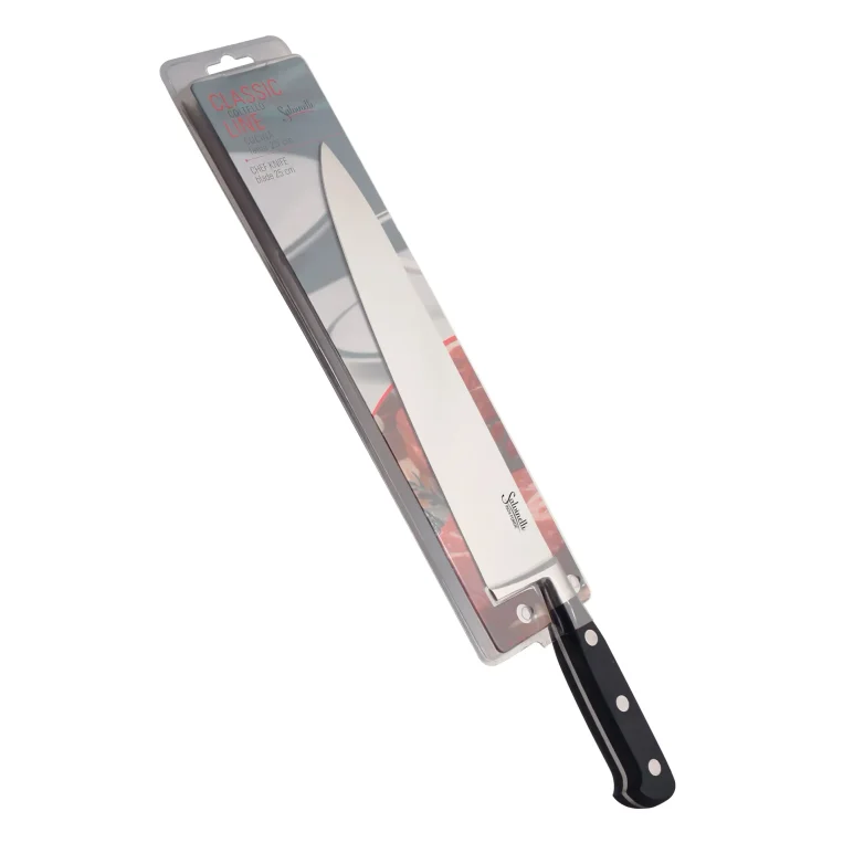 סכין השף המקצועית של Salvinelli היא כלי העבודה המרכזי לכל מטבח, הכוללת להב באורך 25 ס"מ.