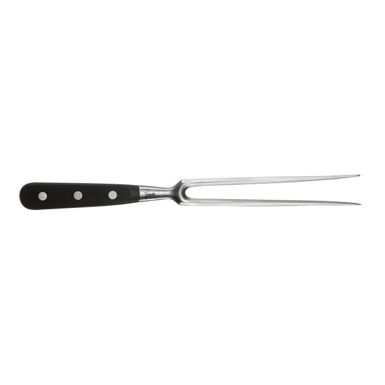 מזלג הצלייה הייעודי של סלווינלי כולל שתי שיניים ארוכות וחזקות המלוטשות למניעת קריעת סיבי הבשר בזמן הייצוב והפריסה. הכלי מיוצר מפלדת אל-חלד מסיבית ללא ניקל המבטיחה שהשיניים לא יתכופפו גם תחת עומס של נתחים כבדים, ומהווה משלים הכרחי לסדרת הסכינים המקצועית להגשה אסתטית ונקייה.