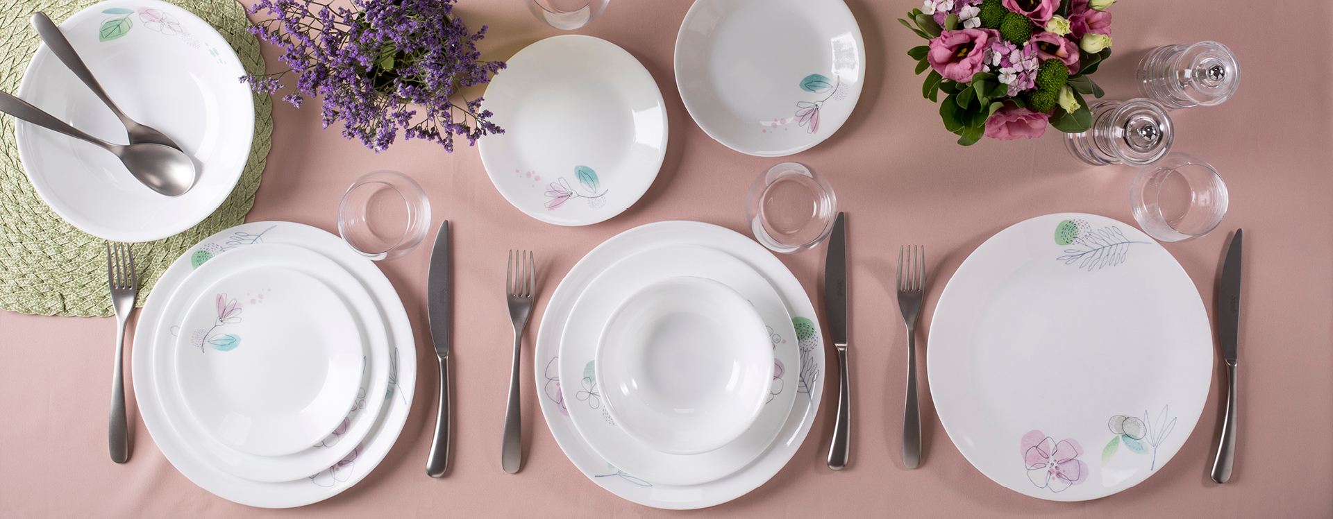 דגם פואטיק מלודי הינו סט נעים המכיל קווי מתאר של פרחים ועלים מלווים בצביעה רכה ועדינה של צבעי מים. הסט מתאים לכל עריכת שולחן ומספק מראה נקי עם טוויסט עדין.