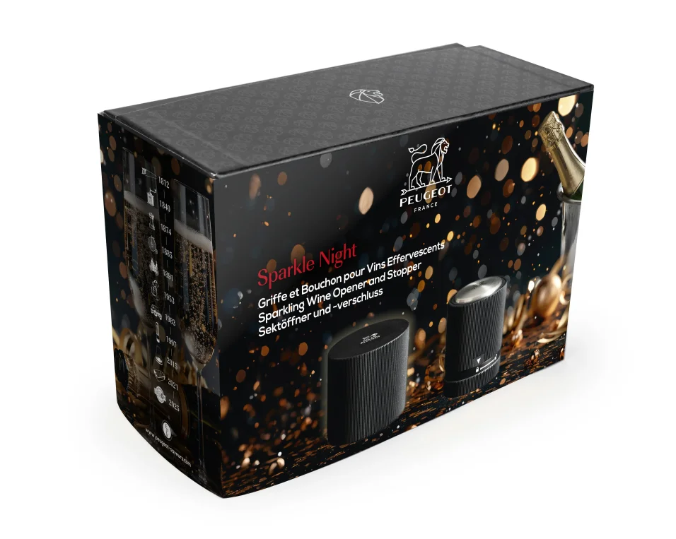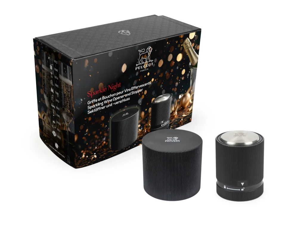 חגגו ללא פשרות. סט ה-"Sparkle Night" מוקדש לשמפניה וליינות מבעבעים. הוא כולל פותחן ייעודי לשליפה בטוחה של פקקים עקשניים בסיבוב פשוט, ופקק שמפניה מדגם Line שננעל על הבקבוק כדי לשמר את הגזים והבועות למשך ימים לאחר הפתיחה. עם גימור בשחור מט אלגנטי, זוהי הערכה החיונית לערבים חגיגיים.
